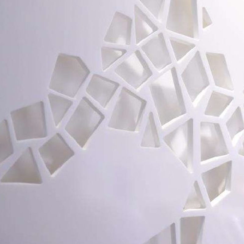 今天,就讓富美家?帶你一起來探索色麗石?為辦公空間帶去的精致與時尚吧 前臺接待處的背景墻采用鉆石切割造型,結(jié)合熱