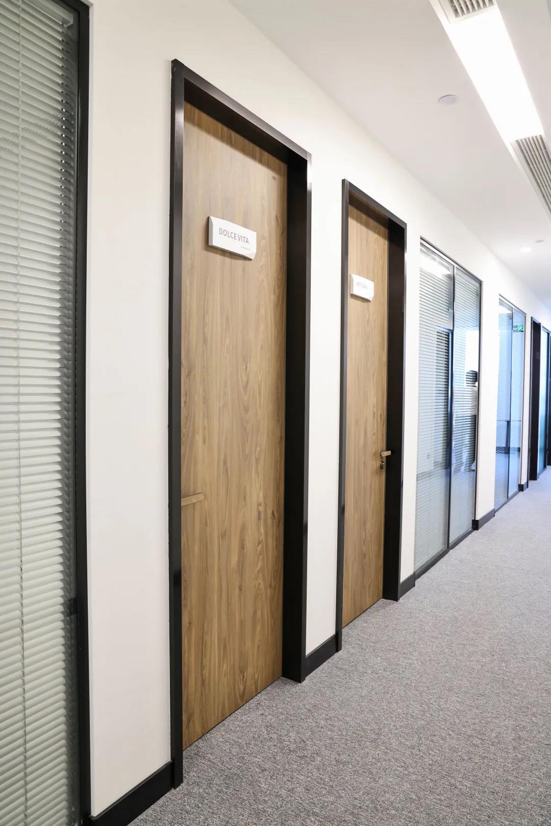 富美家®室內(nèi)門配色豐富,木紋等系列配合20多種表面處理,這些色彩也完全適用于執(zhí)手鎖的定制。門把手內(nèi)鑲嵌任意富美家®裝飾耐火板,與門扇面保持一致,堅固耐用尤其適合辦公空間,每處細(xì)節(jié)都經(jīng)過設(shè)計,使美觀和實用得到完美統(tǒng)一。